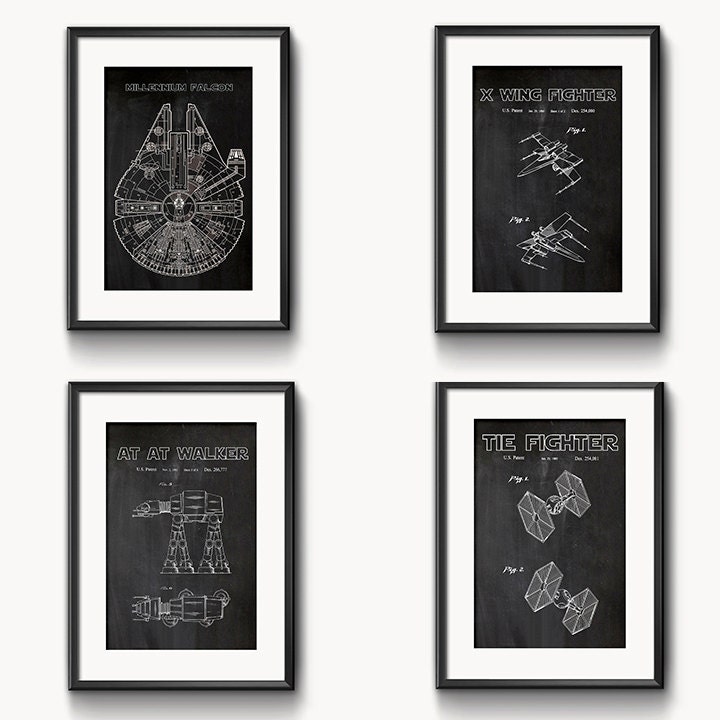 Star Wars Poster Set Of 4 Millennium Falcon Tie Fighter Etsy